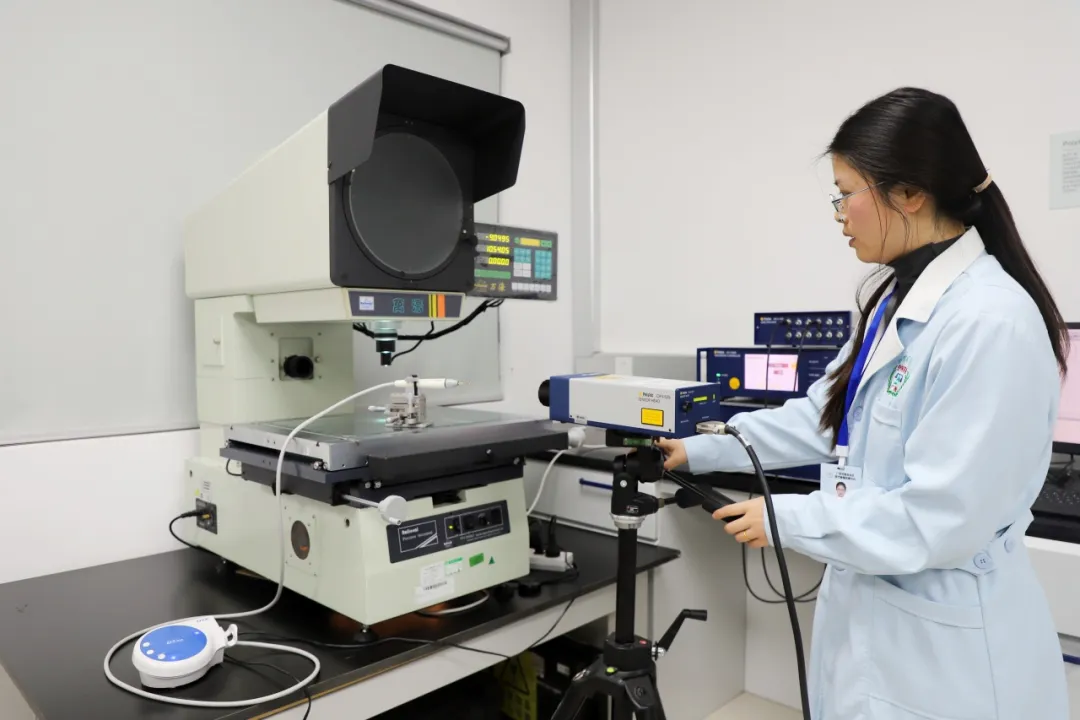 检验员使用激光测振仪检测洁牙机输出特性