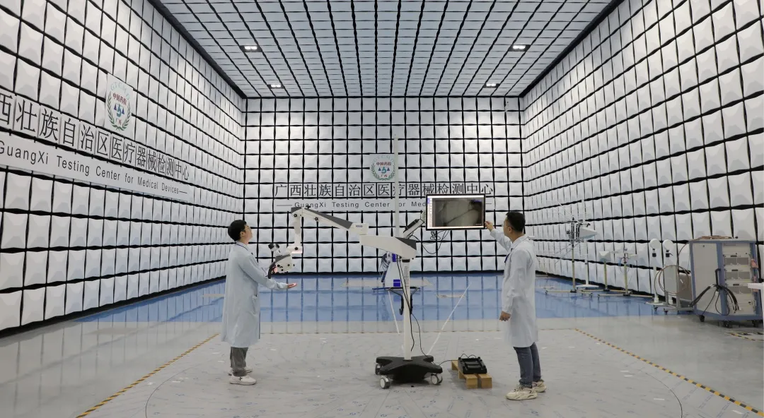 2026年,广西器检中心将建成10米法电磁兼容实验室,填补区内大型高端医疗器械电磁兼容高端检测空白,与已建成的桂林实验室形成南北协同的检验检测服务平台,全面构建“服务+监管+检测”一体化技术支撑体系,为广西医疗器械产业高质量发展注入持续动力。
