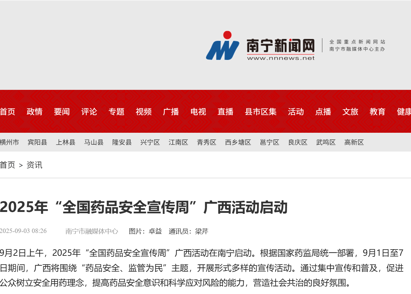 9月2日上午,2025年“全国药品安全宣传周”广西活动在南宁启动。根据国家药监局统一部署,9月1日至7日期间,广西将围绕“药品安全、监管为民”主题,开展形式多样的宣传活动。通过集中宣传和普及,促进公众树立安全用药理念,提高药品安全意识和科学应对风险的能力,营造社会共治的良好氛围。