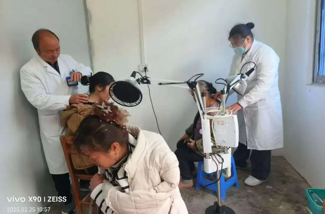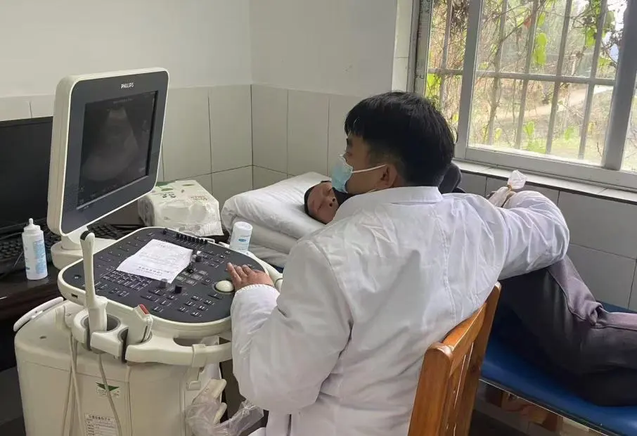 八圩瑶族乡卫生院公共卫生服务部田车部长带队,为53名群众(含42名65岁以上老人)开展“家门口靶向式”的体检服务。针对山区高发的四类慢性病,设置血压、血糖监测,血常规检查、心电图检查、B超(肝胆胰脾肾及结石筛查)、肝肾功检测等20余项检查。结果显示:超七成参检者存在血脂异常、高血压等问题,12人检出胆肾结石。医疗组现场建立健康档案,根据体检结果一对一提出饮食、用药建议,对慢性病患者进行随访管理。80岁的黄大爷感慨说:“医生检查得很仔细,还教我怎么控制尿酸、血糖,要我少喝点酒,太贴心了!”“原来高血脂、高血压和吃得太油腻太咸等有关,医生教的方法很实在!不用跑远路,还能听专家讲知识,太方便了”65岁的韦阿婆连连点赞。