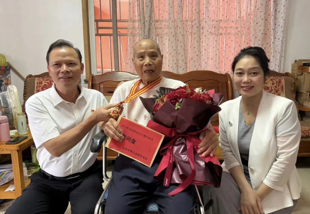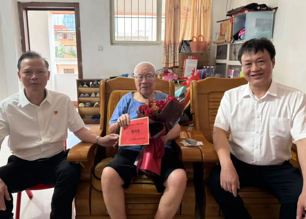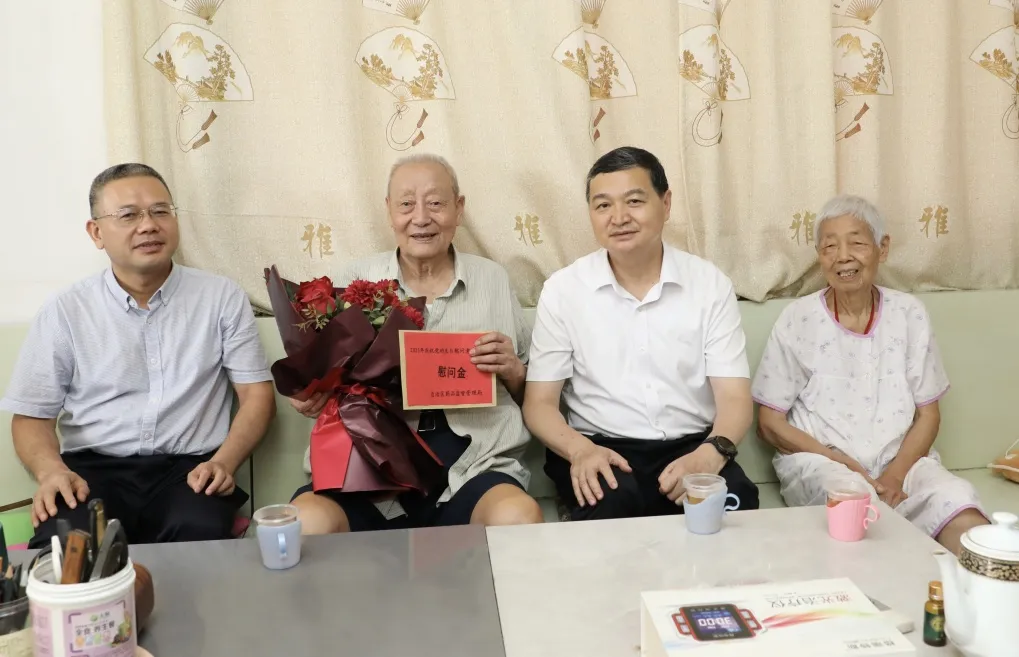6月30日,局党组书记、局长李勇强带队走访慰问老党员、离休干部赵枫林,送上慰问金和鲜花,表达党组织的关怀和问候。悉心询问老党员的身体状况、生活情况以及存在的困难,认真倾听老党员讲述过去的奋斗历程和为党奉献的难忘岁月,叮嘱老人家要保重身体,保持积极乐观的生活态度。同时要求相关处室的同志要时刻关心关爱老党员,主动帮助解决实际困难,让老党员切实感受到党组织的关怀与温暖。局党组成员、副局长韦广辉、万秋、沈宏睿分别带队慰问5名老党员和困难党员。