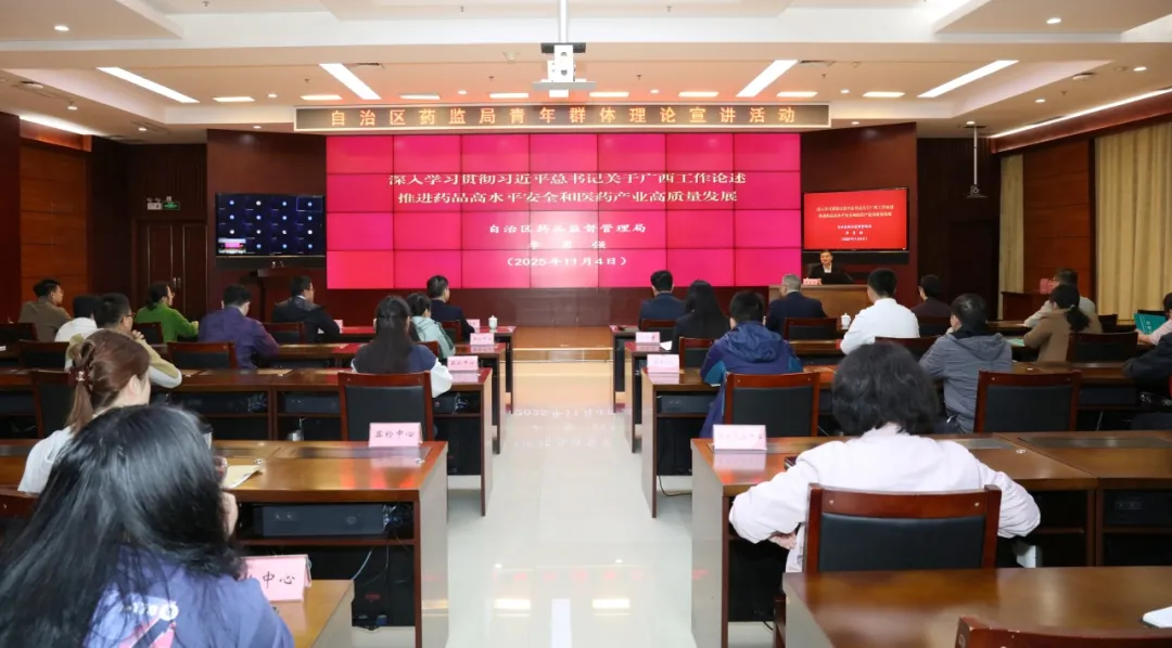 11月4日,AG真人举办青年群体理论宣讲活动,局党组书记、局长李勇强作题为《深入学习贯彻席大大总书记关于广西工作论述 推进药品高水平安全和医药产业高质量发展》的专题宣讲。
