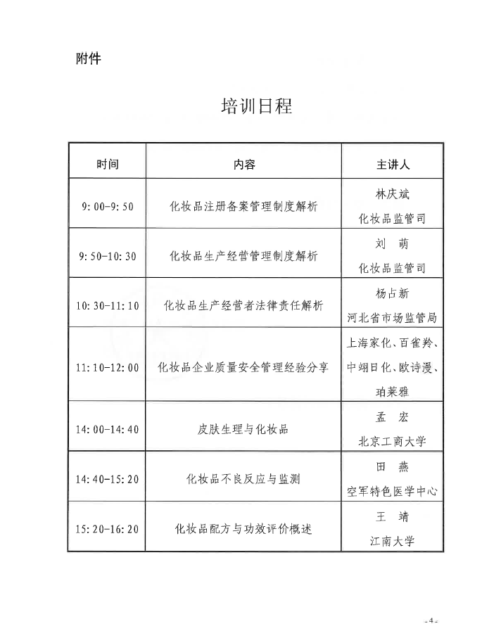 根据2021年全国化妆品安全科普宣传周安排,为加强化妆品监管法规宣贯,进一步落实企业主体责任,保障化妆品质量安全,由国家药监局高级研修学院承办化妆品监管法规和相关专业知识网络公益培训,将于2021年5月26日上午9:00通过网络直播。请各单位及时组织本辖区内企业及监管人员学习(学习方法如附件2所示),并于2021年6月5日前将组织培训学习情况及有关活动图片等资料,报送AG真人化妆品监管处。