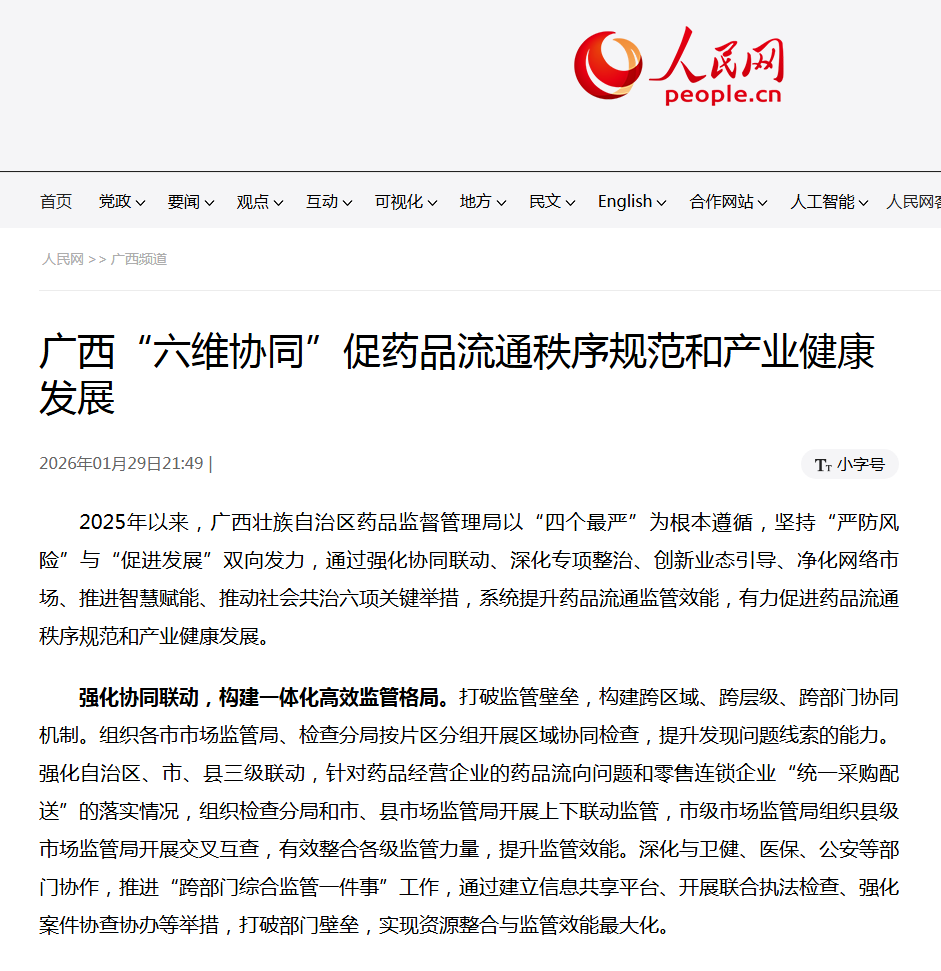 2025年以来,AG真人以“四个最严”为根本遵循,坚持“严防风险”与“促进发展”双向发力,通过强化协同联动、深化专项整治、创新业态引导、净化网络市场、推进智慧赋能、推动社会共治六项关键举措,系统提升药品流通监管效能,有力促进药品流通秩序规范和产业健康发展。